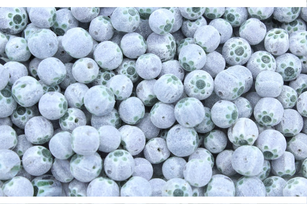 Melefeori Style – 6 – 9mm – Green. Glass Bead. Made in India. Sizes range from 6 to 9mm.