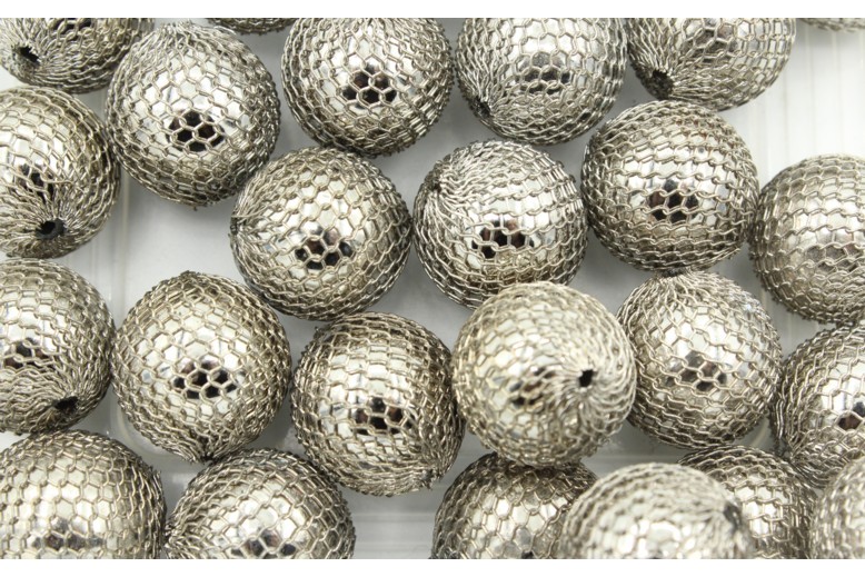 Mesh Bead – 16mm – Antique Silver. Quality product. Metal Bead. Plated.