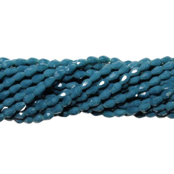 Mini Drop – 6mm – Faceted – Teale – 46cm Strand. 6 x 4mm bead size. Faceted drop glass bead. Please contact us to purchase individual pieces.