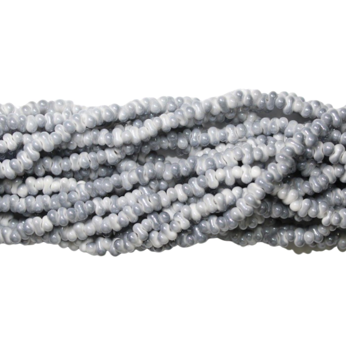 Modular Bead – 6 x 3mm – 40cm Strand – Grey / White. Glass bead. Dog bone shaped.