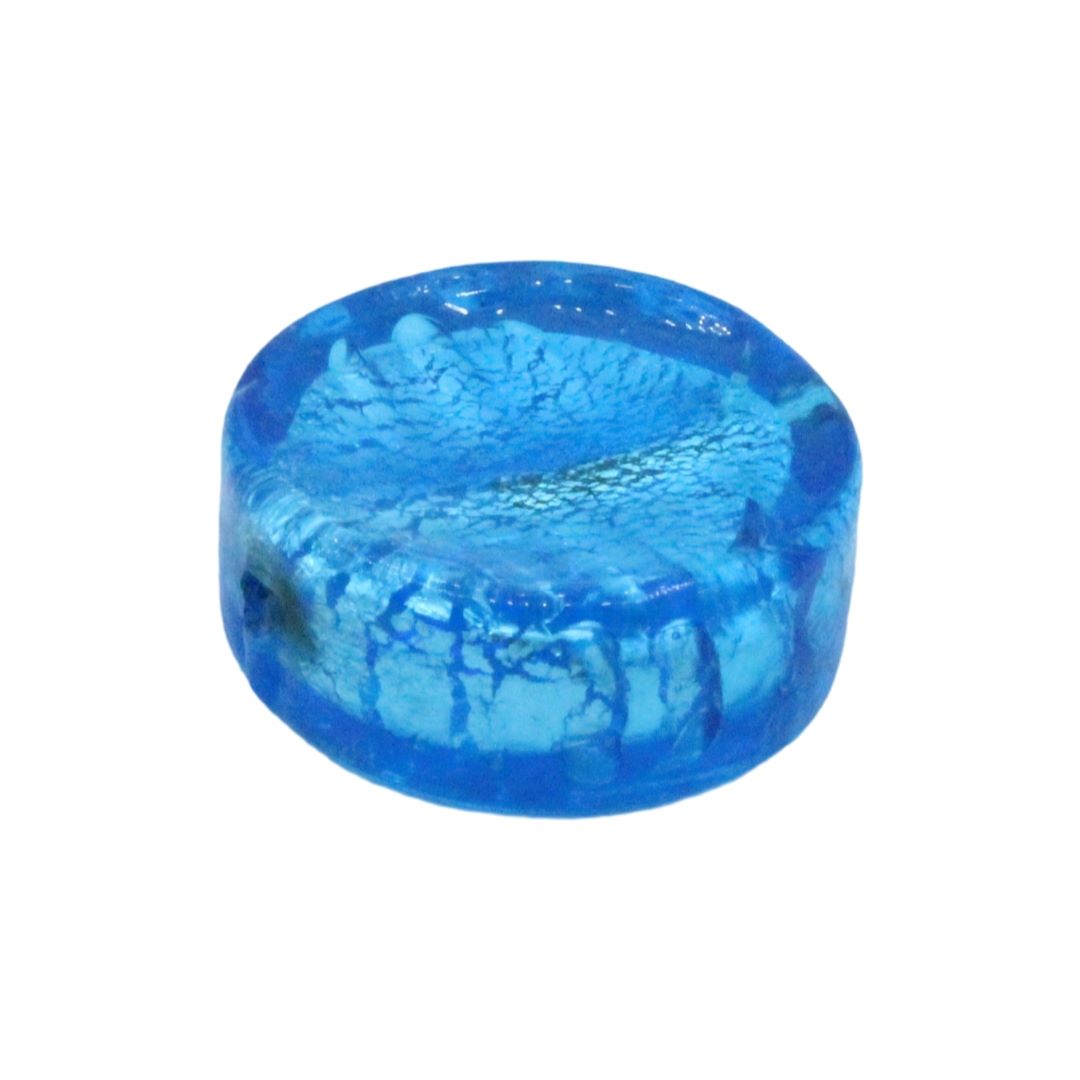 Murano Glass – Coin – 22mm – Dark Aqua / Silver.