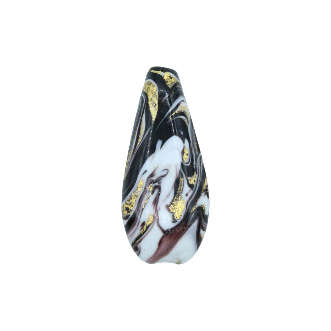 Murano Glass – Flat Drop Bead – 62mm – Amethyst / Gold.