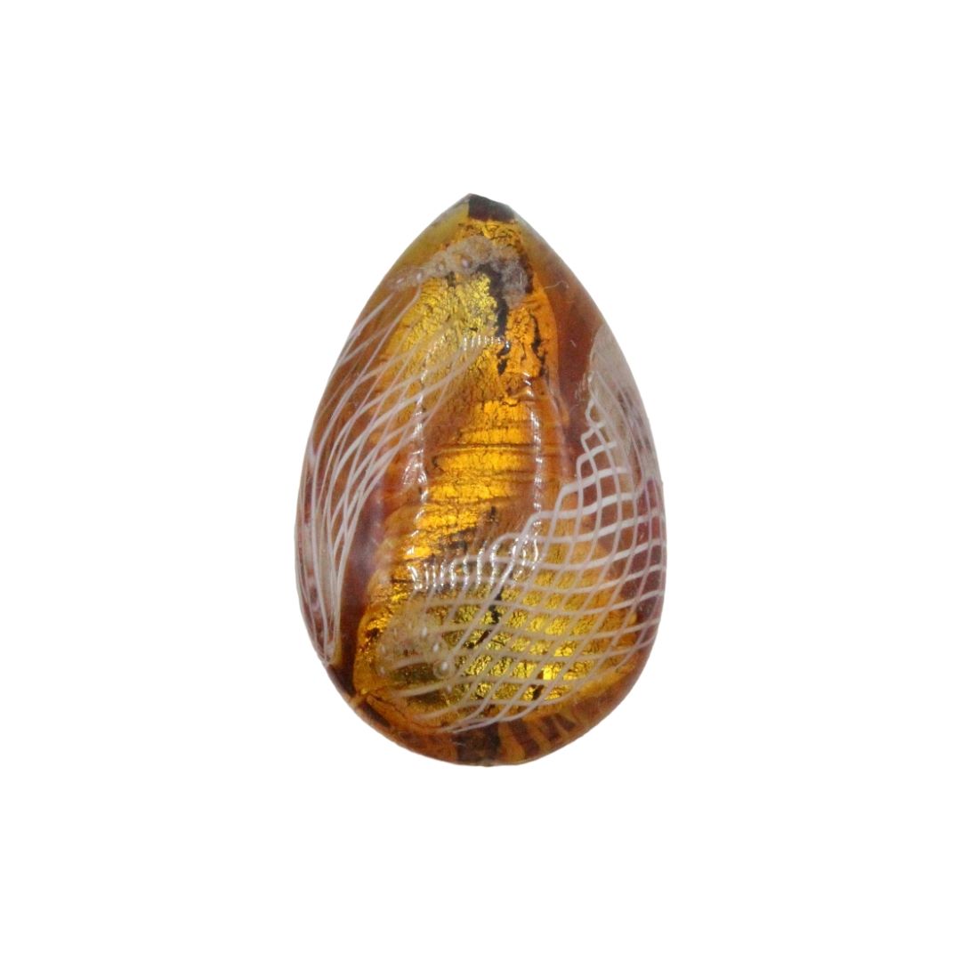 Murano Glass – Flat Drop with Pattern – 35mm – Copper / Silver.