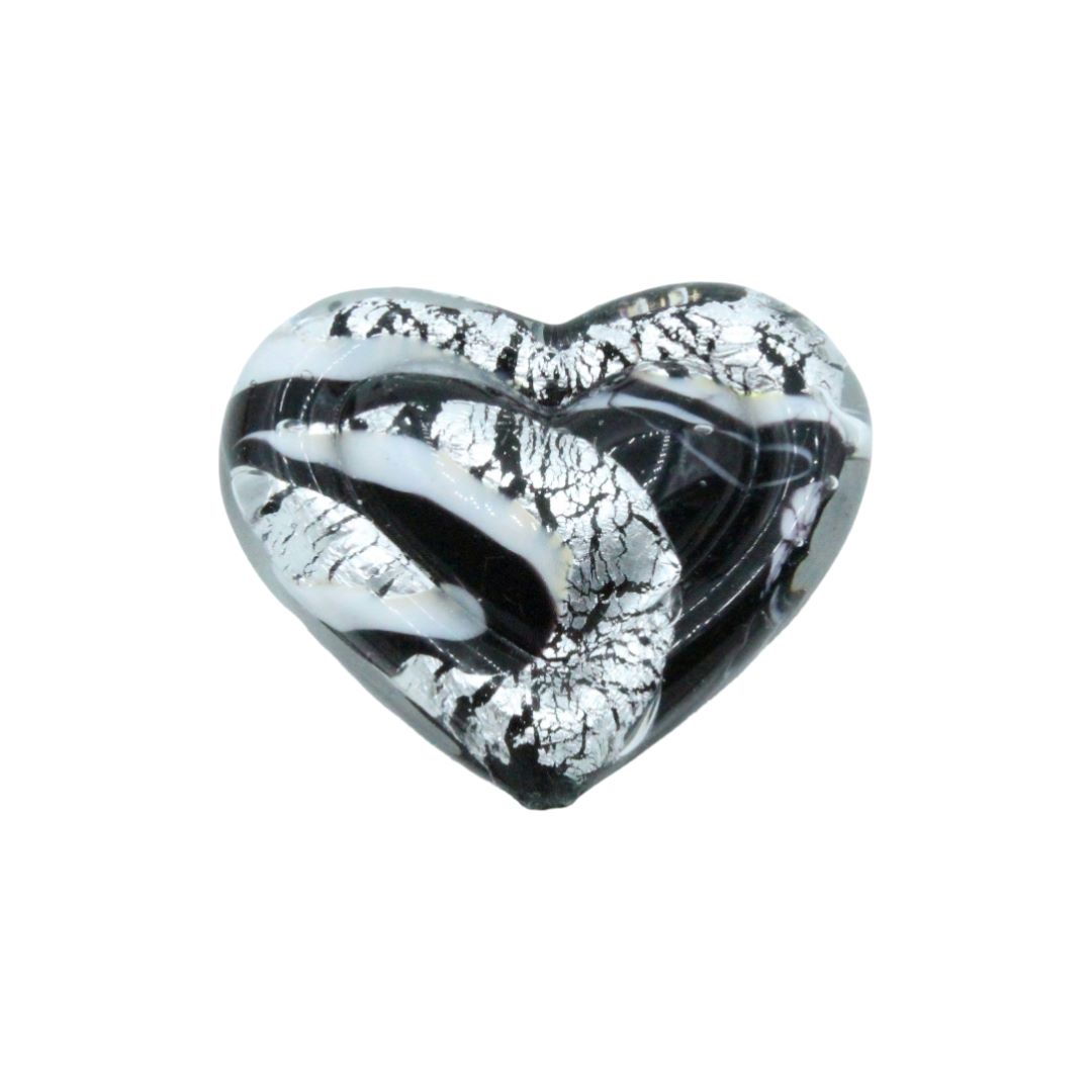 Murano Glass – Heart – Flat– 30mm – Devoted 2 U – Black / Silver.