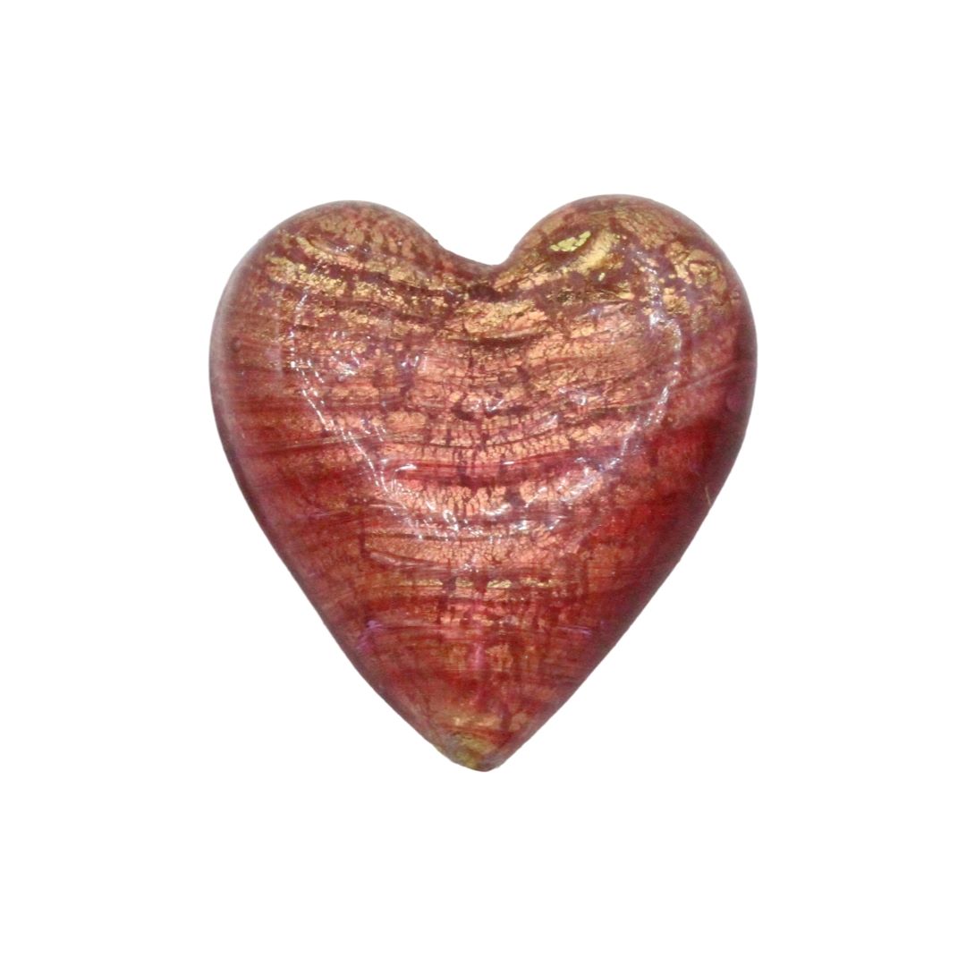 Murano Glass – Heart – Flat – 35mm – Salmon / Gold.