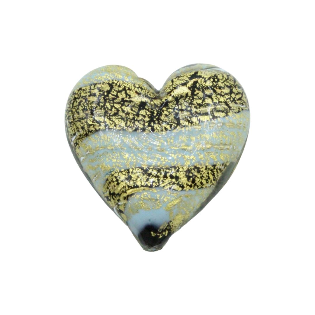Murano Glass – Heart – Flat – Stripe – 40mm – Light Blue / Black.