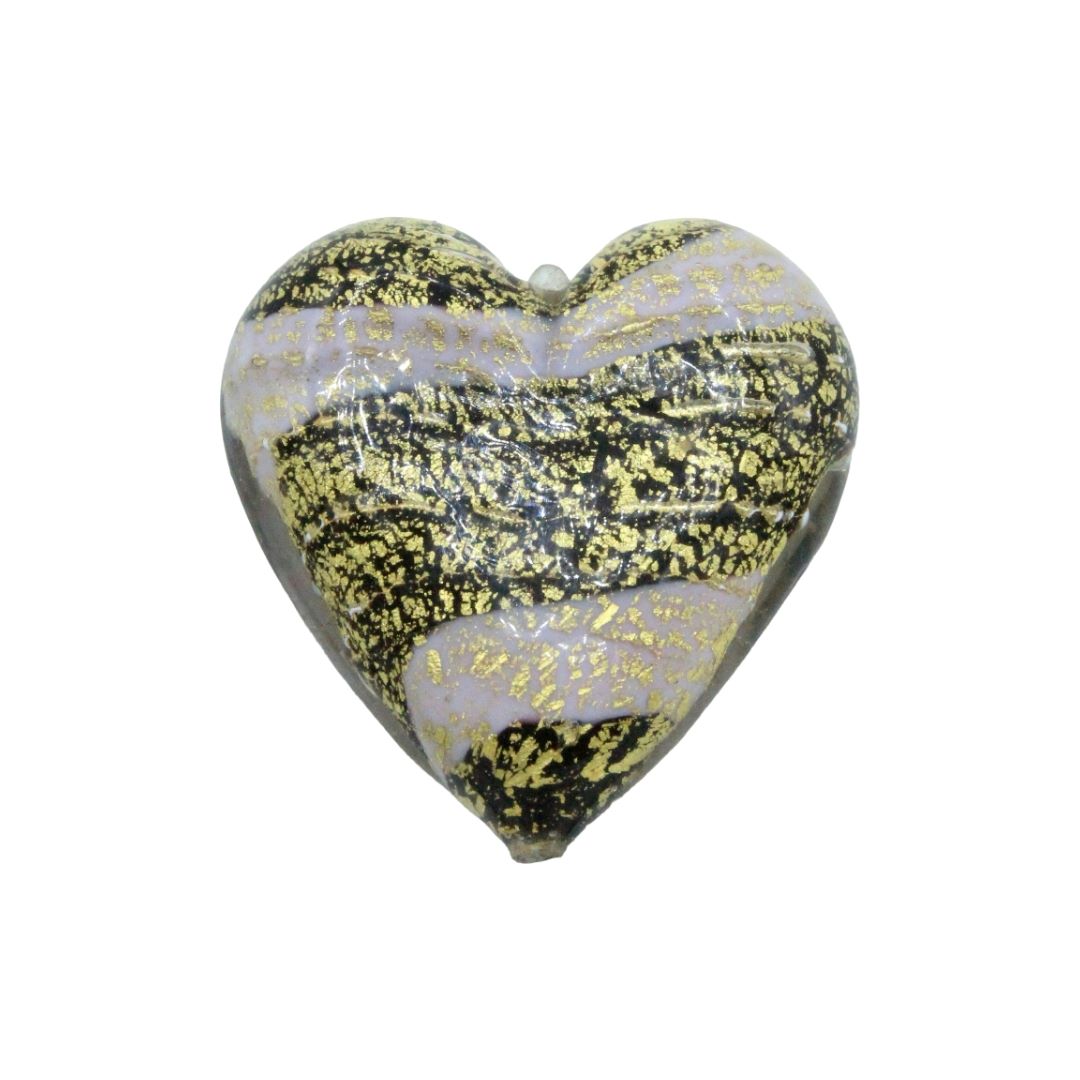 Murano Glass – Heart – Flat – Stripe – 40mm – Light Purple / Black.
