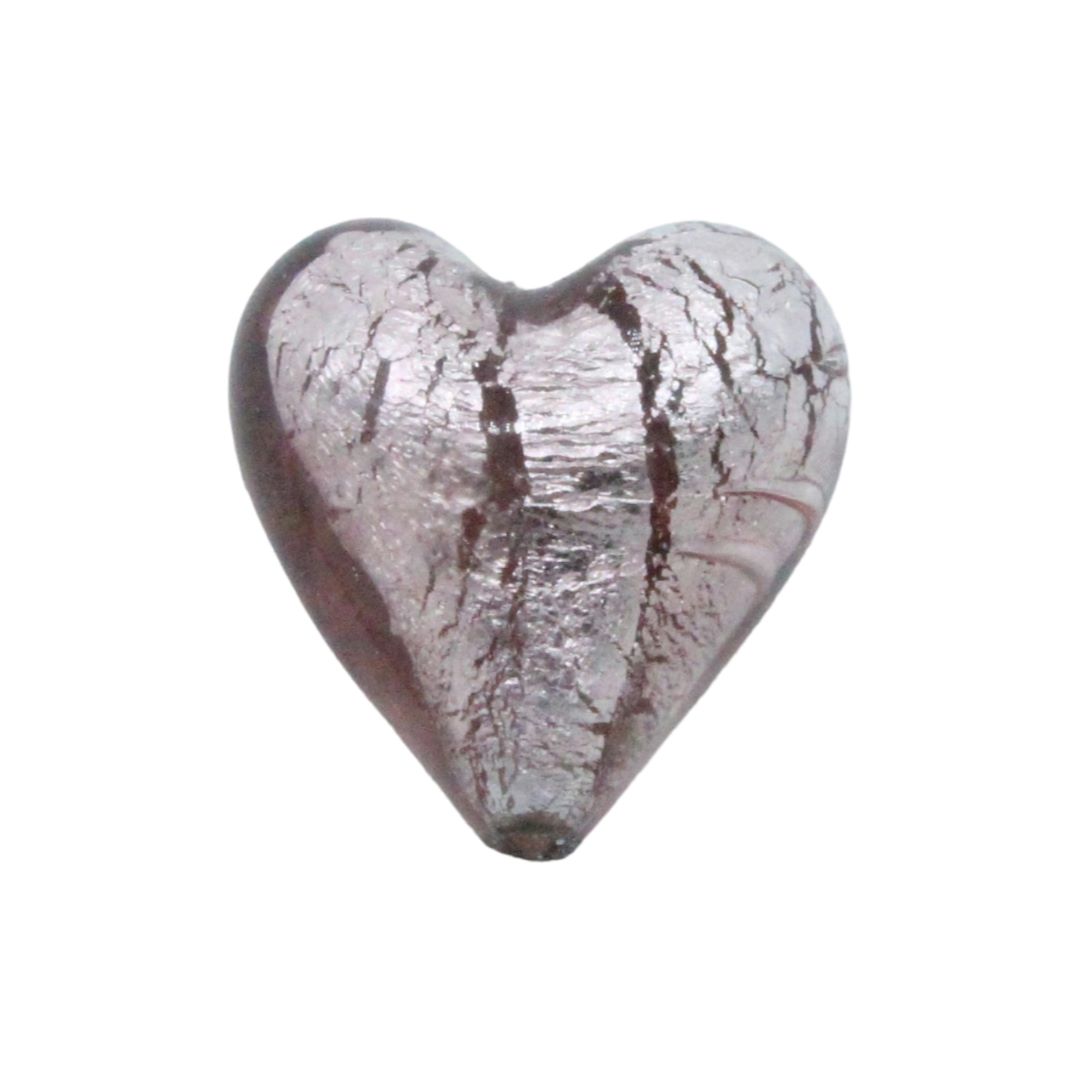 Murano Glass – Heart – Puffy– 20mm – Light Amethyst / Silver.