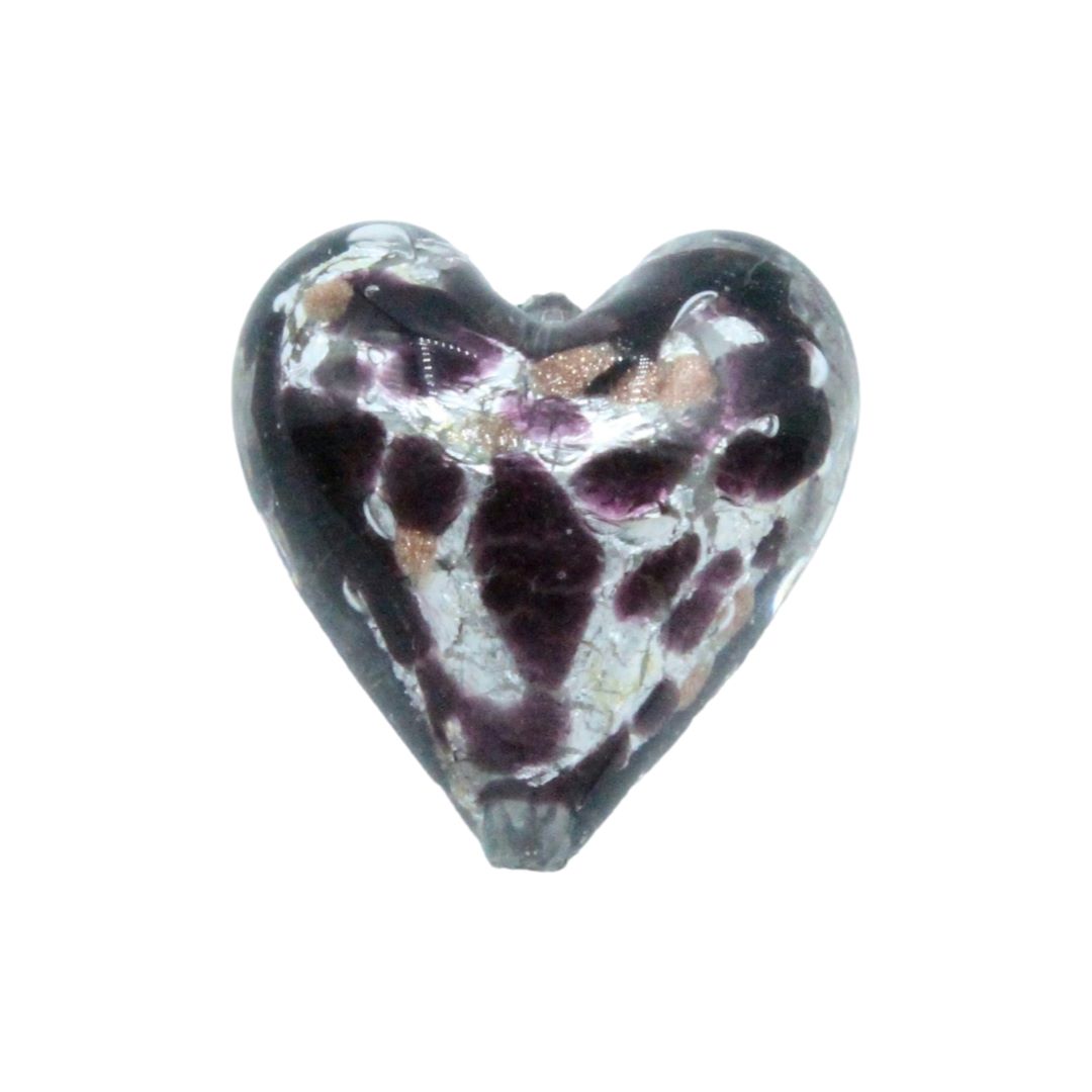 Murano Glass – Heart – Puffy– 20mm – Speckle – Amethyst / Silver.