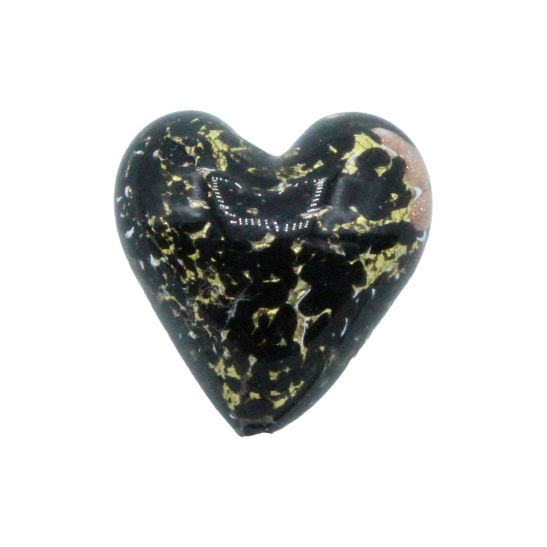 Murano Glass – Heart – Puffy– 20mm – Speckle – Black / Gold.