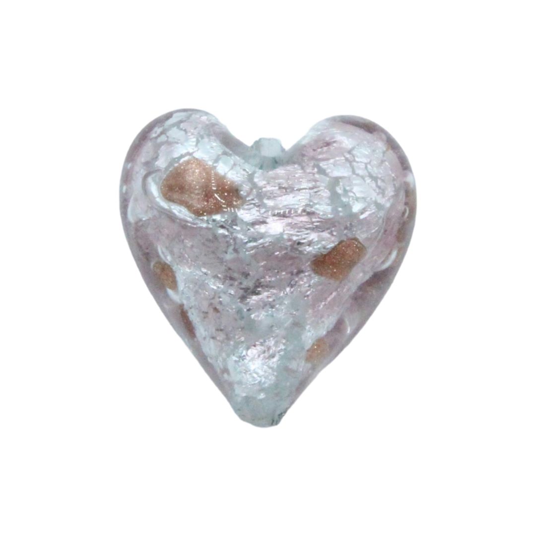 Murano Glass – Heart – Puffy– 20mm – Speckle – Copper / Silver.