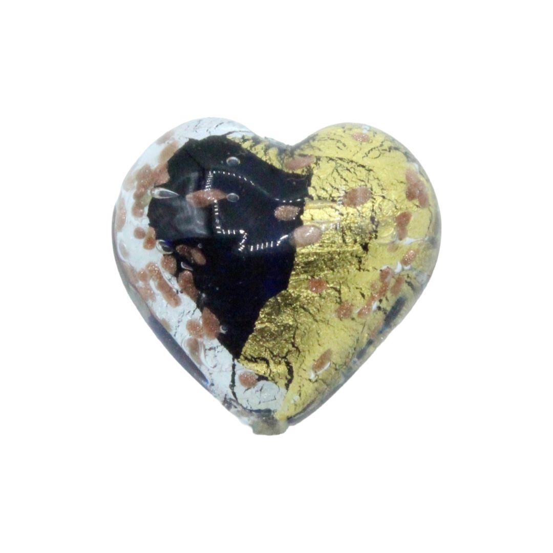 Murano Glass – Heart – Puffy– 30mm – Black / Gold / Silver.