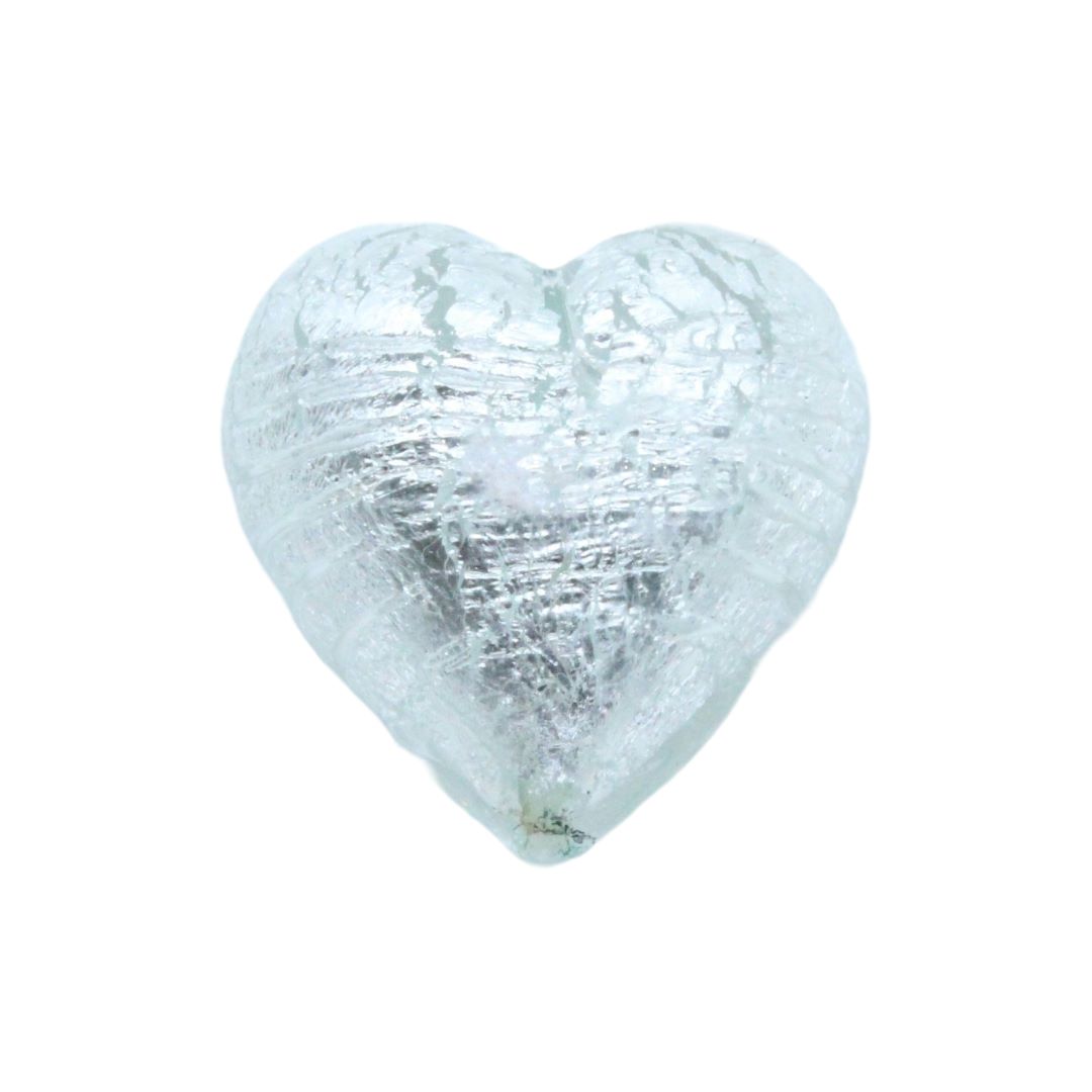 Murano Glass – Heart – Puffy– 30mm – Clear / Silver.