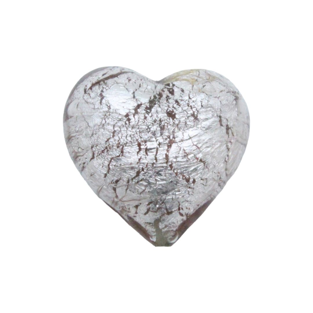 Murano Glass – Heart – Puffy– 30mm – Light Amethyst / Silver.