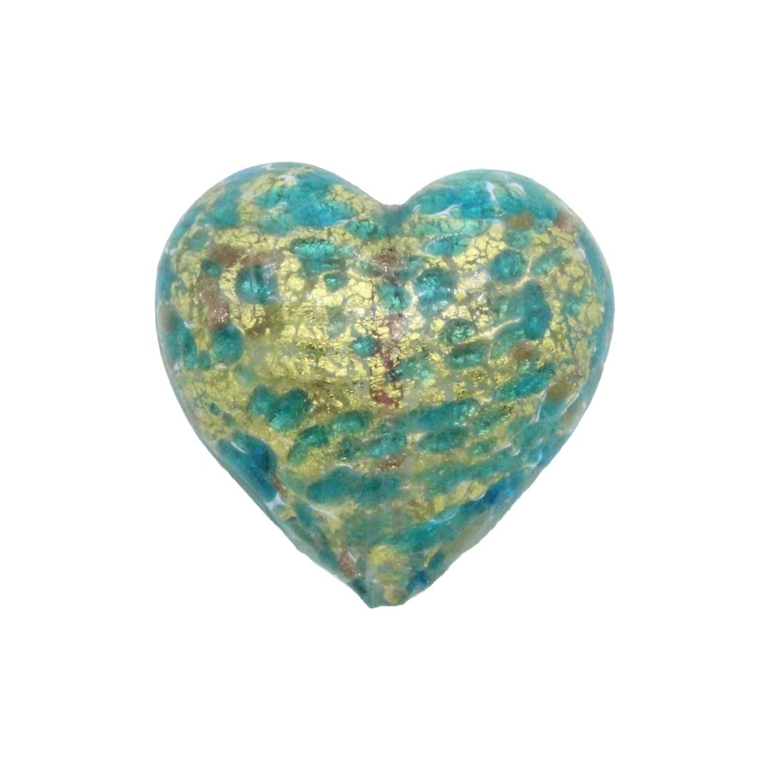 Murano Glass – Heart – Puffy– 30mm – Speckle – Teale / Gold.
