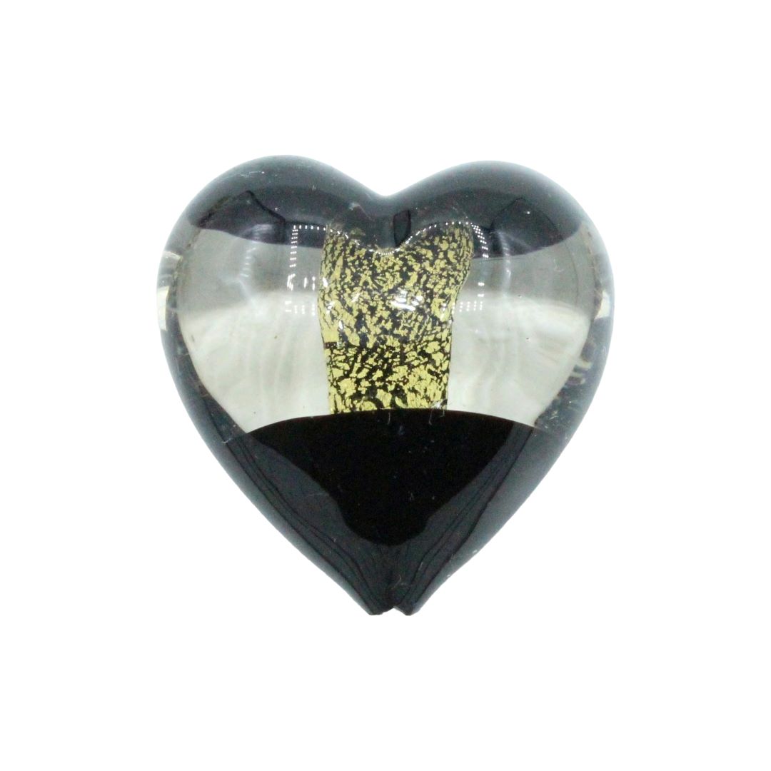 Murano Glass – Heart – Puffy – 32mm – 2 Tone – Black / Gold.