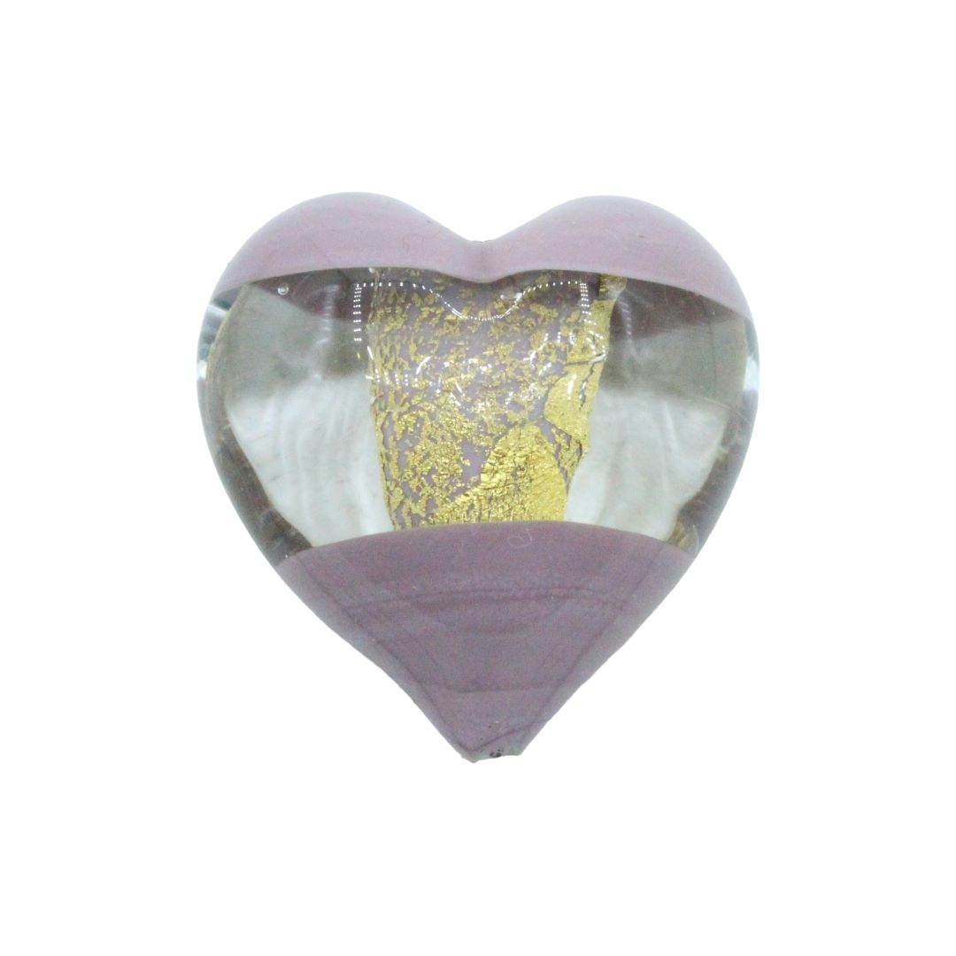 Murano Glass – Heart – Puffy – 32mm – 2 Tone – Purple / Gold.
