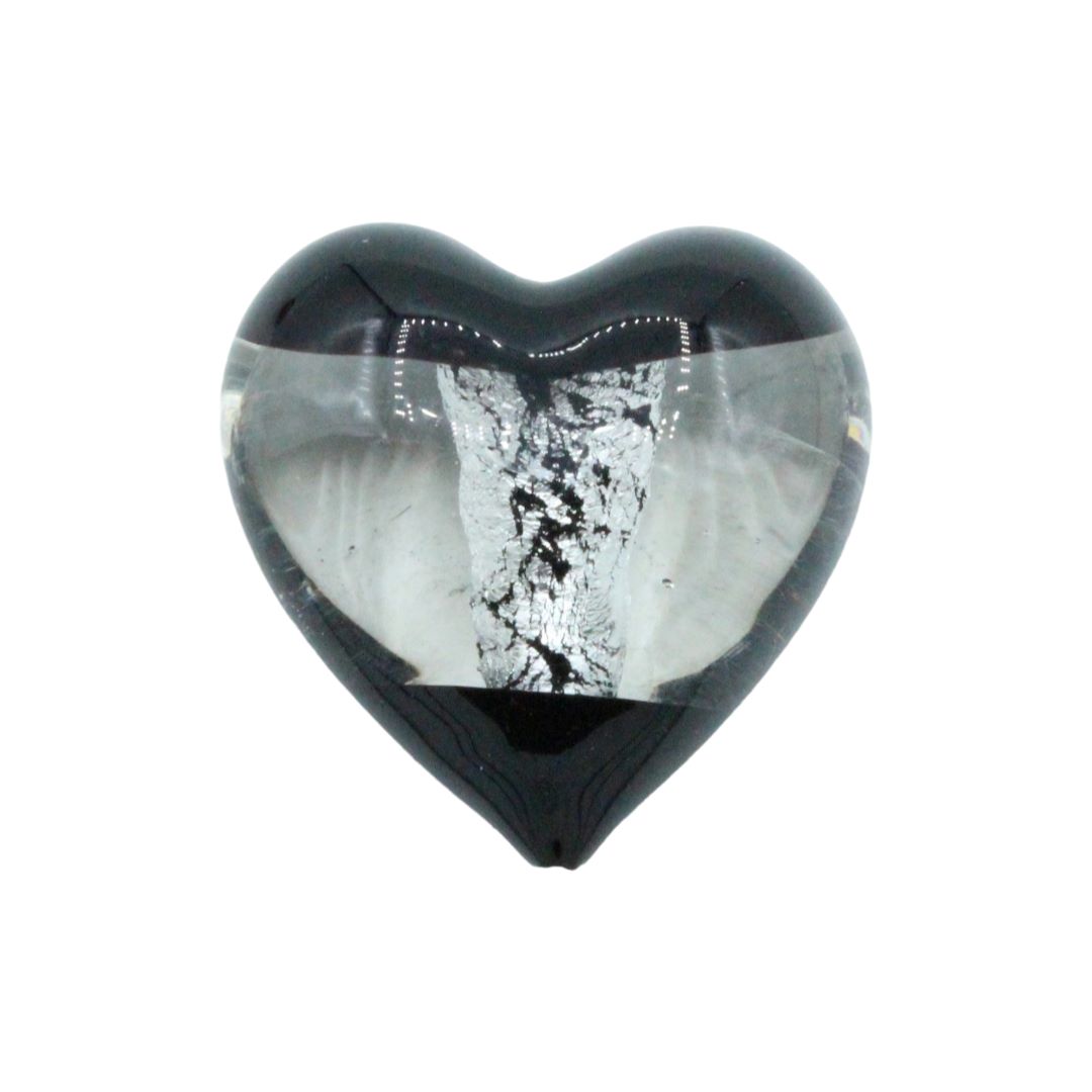 Murano Glass – Heart – Puffy – 38mm – 2 Tone – Black / Silver.