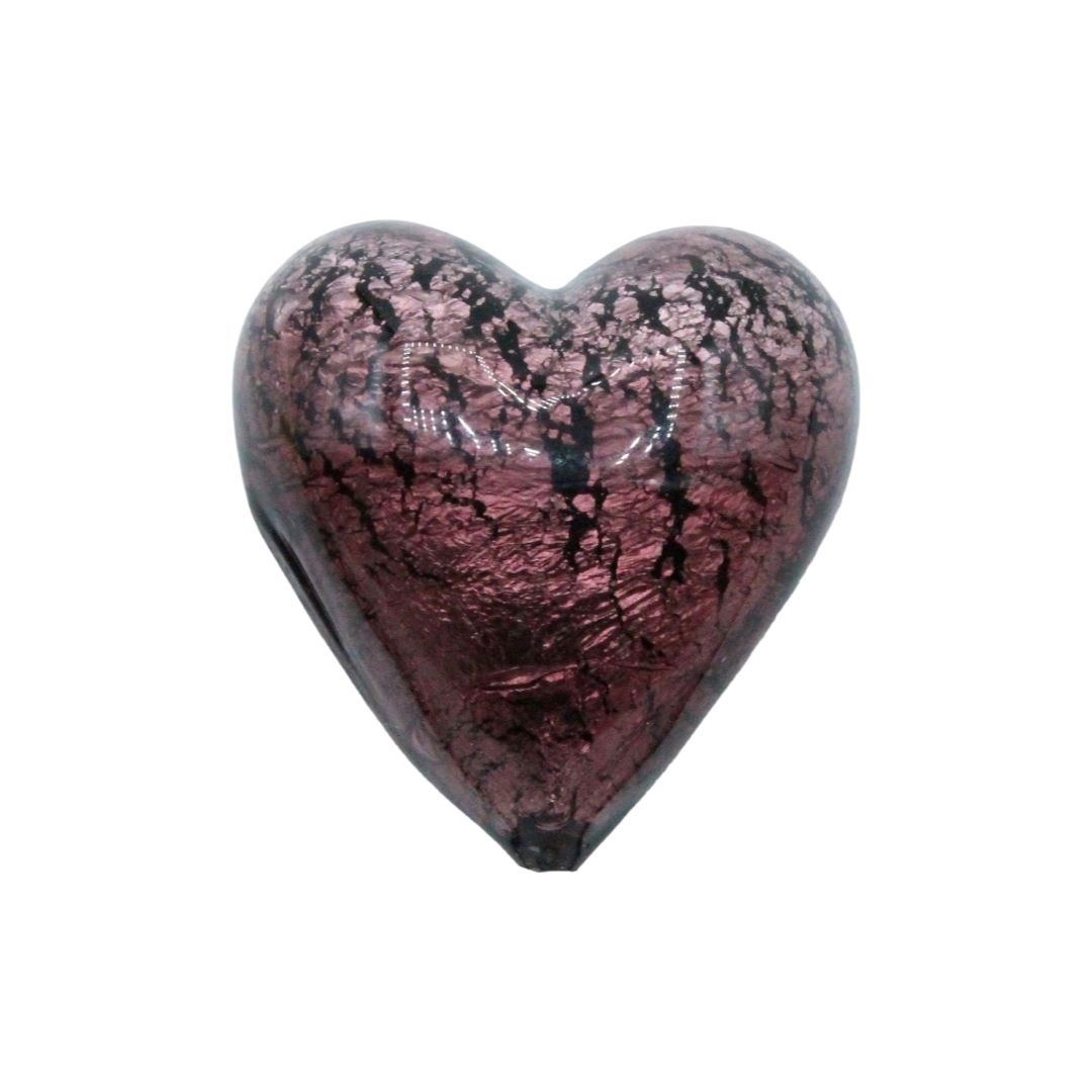 Murano Glass – Heart – Puffy – 40mm – Amethyst / Silver.