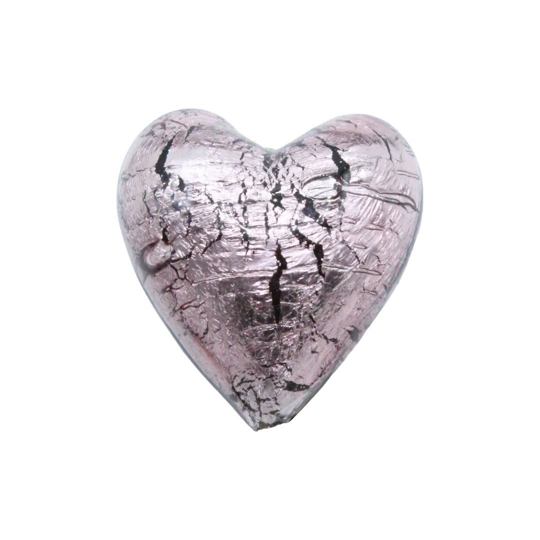 Murano Glass – Heart – Puffy – 40mm – Light Amethyst / Silver.