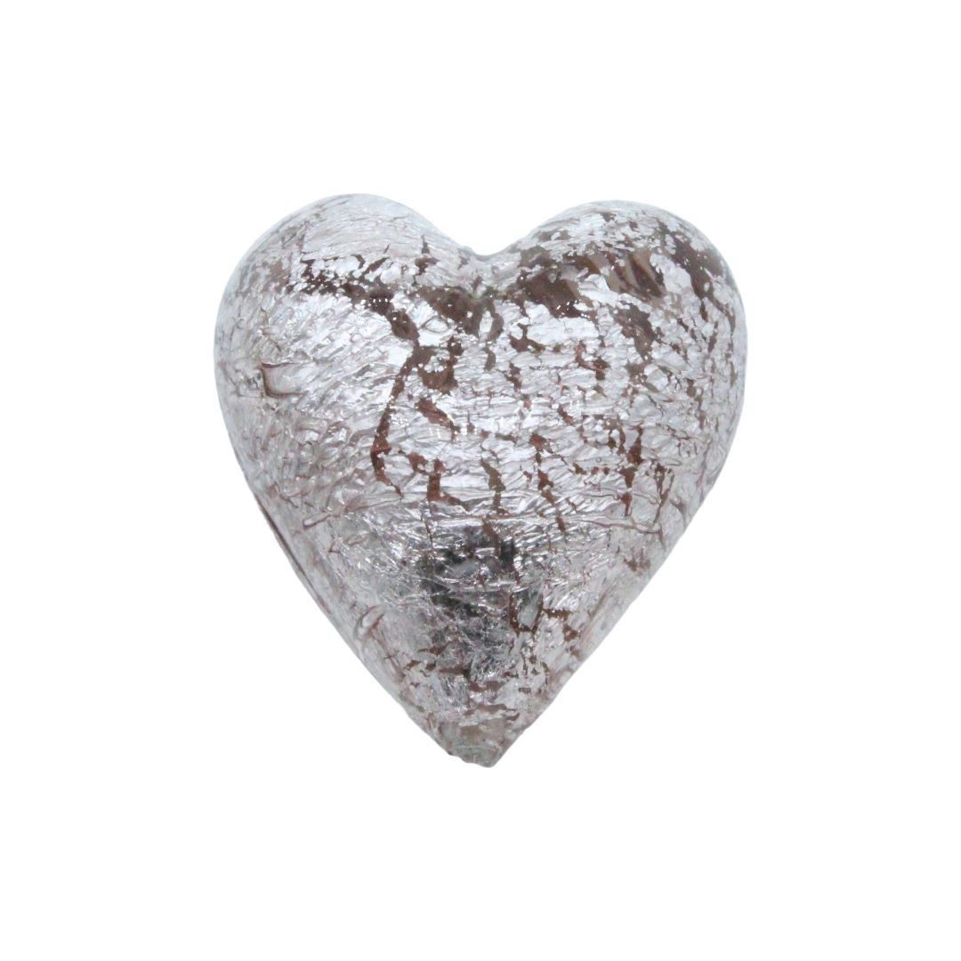 Murano Glass – Heart – Puffy – 40mm – Violet / Silver.