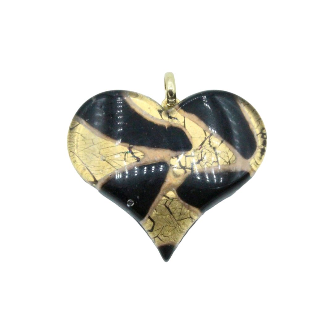 Murano Glass – Pendant – Heart – 40mm – Black / Gold.