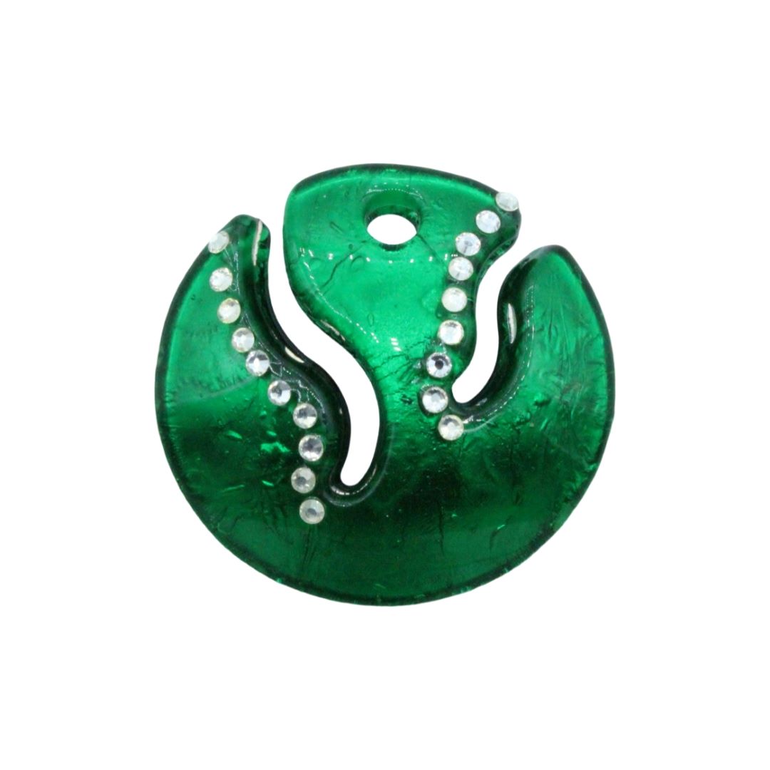 Murano Glass – Pendant – Round / Flame / Crystal – 50mm – Emerald