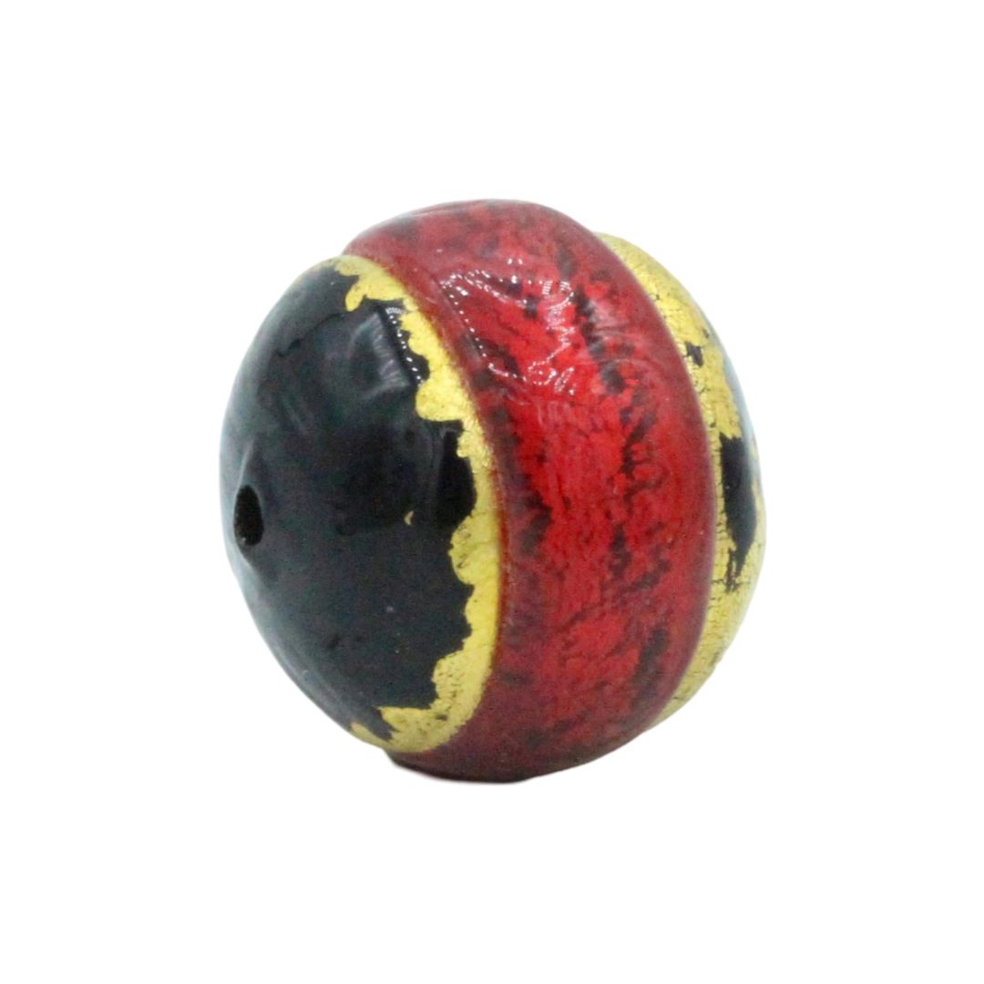 Murano Glass – Round – 16mm – Black / Red / Gold.