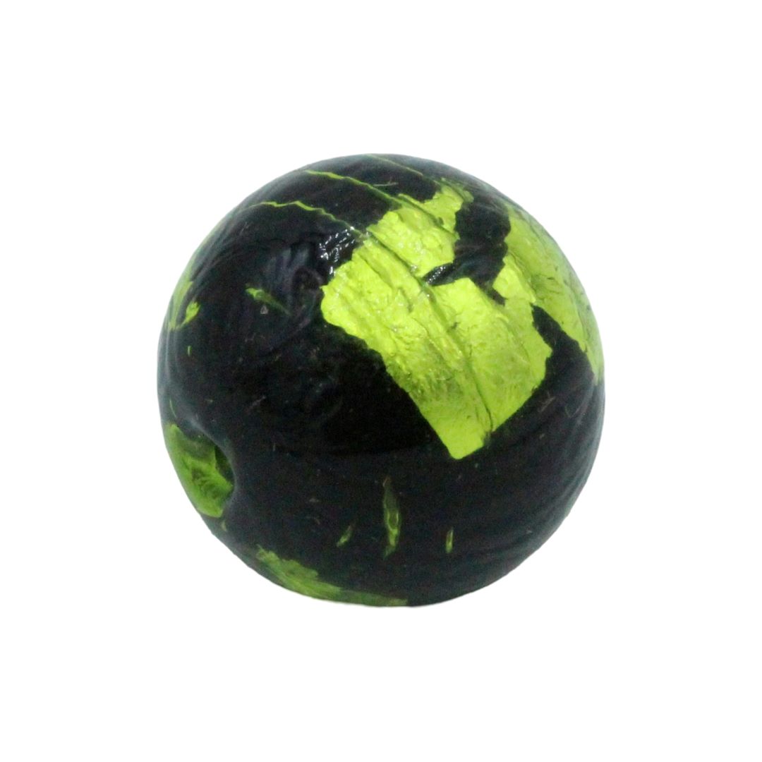 Murano Glass – Round – 20mm – Black / Green Flakes.