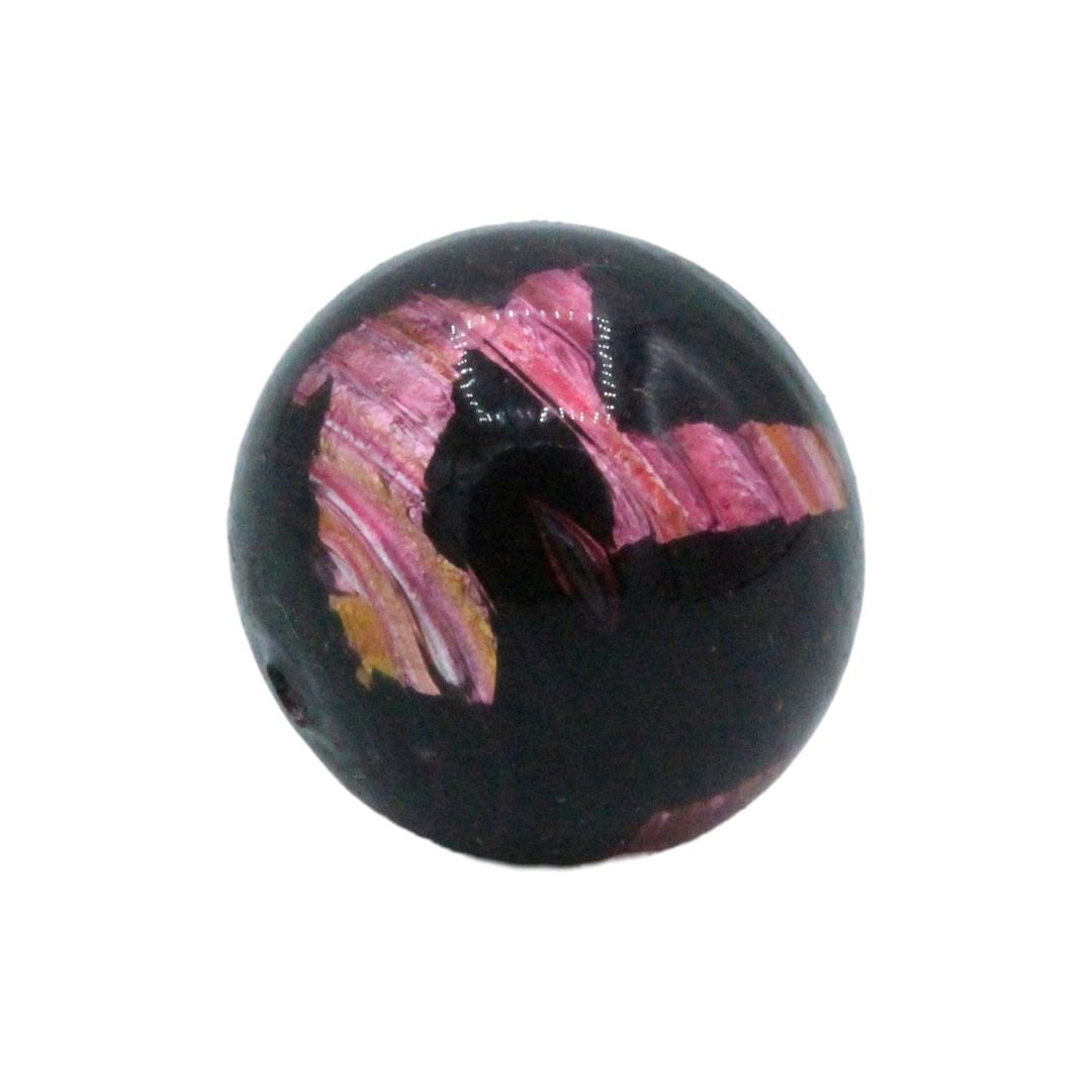 Murano Glass – Round – 20mm – Black / Pink Flakes.