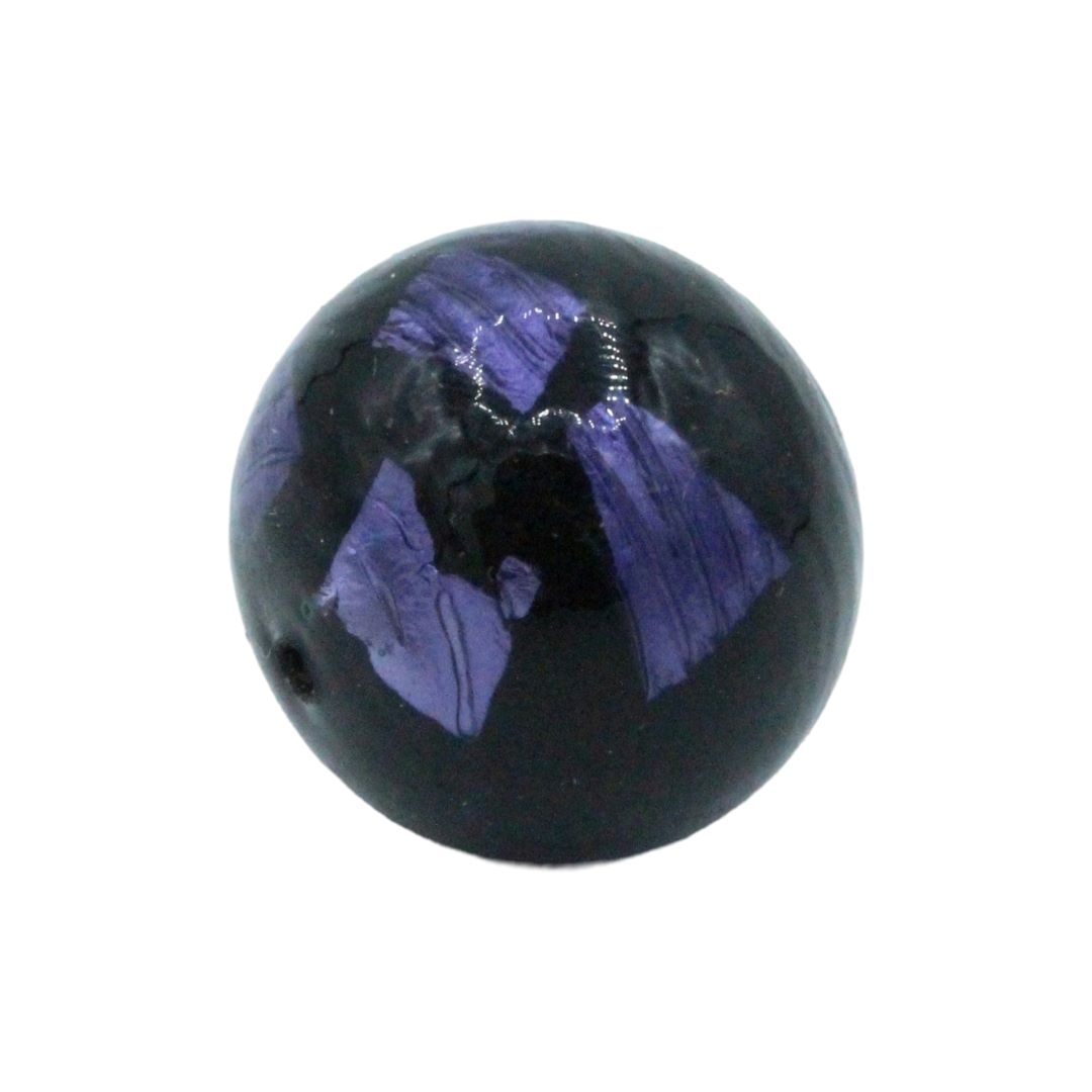 Murano Glass – Round – 20mm – Black / Purple Flakes.
