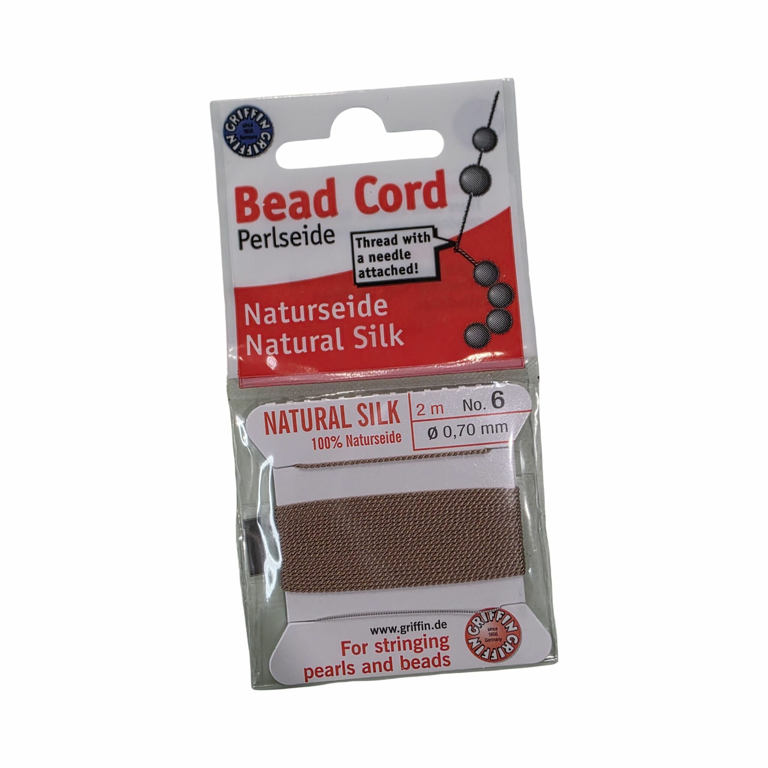 Griffin silk cord is perfect for creating elegant necklaces and bracelets. Made from 100% pure 3-ply silk, it’s soft, luxurious, and highly durable with excellent stretch resistance. Pre-threaded with a flexible stainless-steel needle, it’s ready to use and passes easily through most beads and pearls.