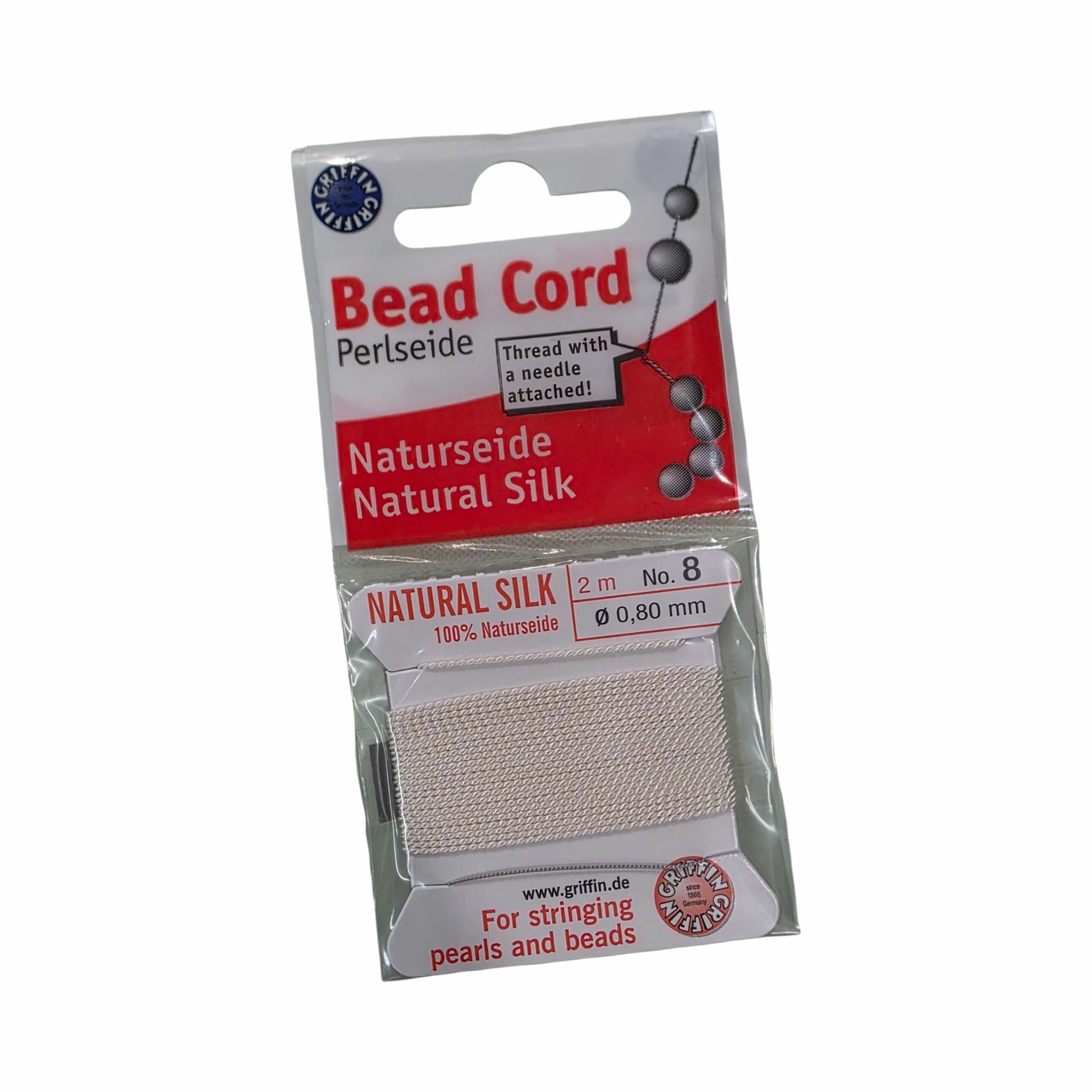 Griffin silk cord is perfect for creating elegant necklaces and bracelets. Made from 100% pure 3-ply silk, it’s soft, luxurious, and highly durable with excellent stretch resistance. Pre-threaded with a flexible stainless-steel needle, it’s ready to use and passes easily through most beads and pearls.