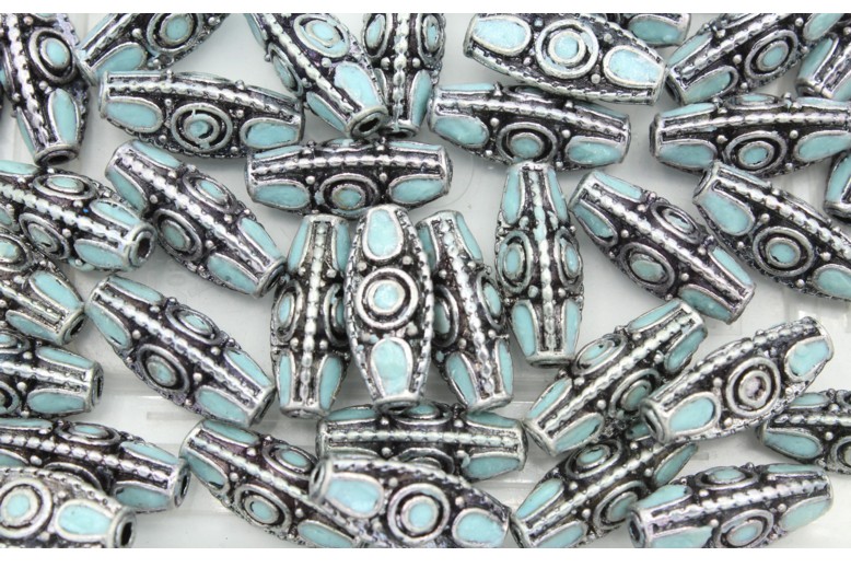 Navette Shape – 18 x 8mm – Antique Silver / Aqua. Quality product. Metal Bead. Plated.