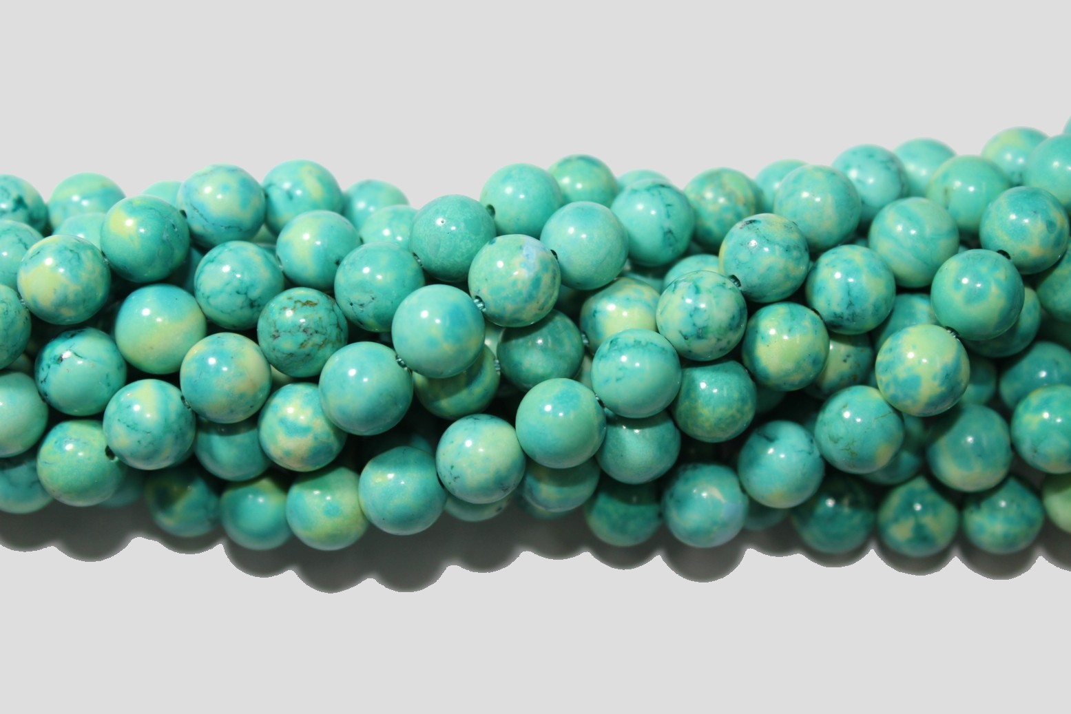 New Turquoise – 10mm Round – 39cm Strand – C. 10mm bead size. Natural Turquoise. Dyed colour.