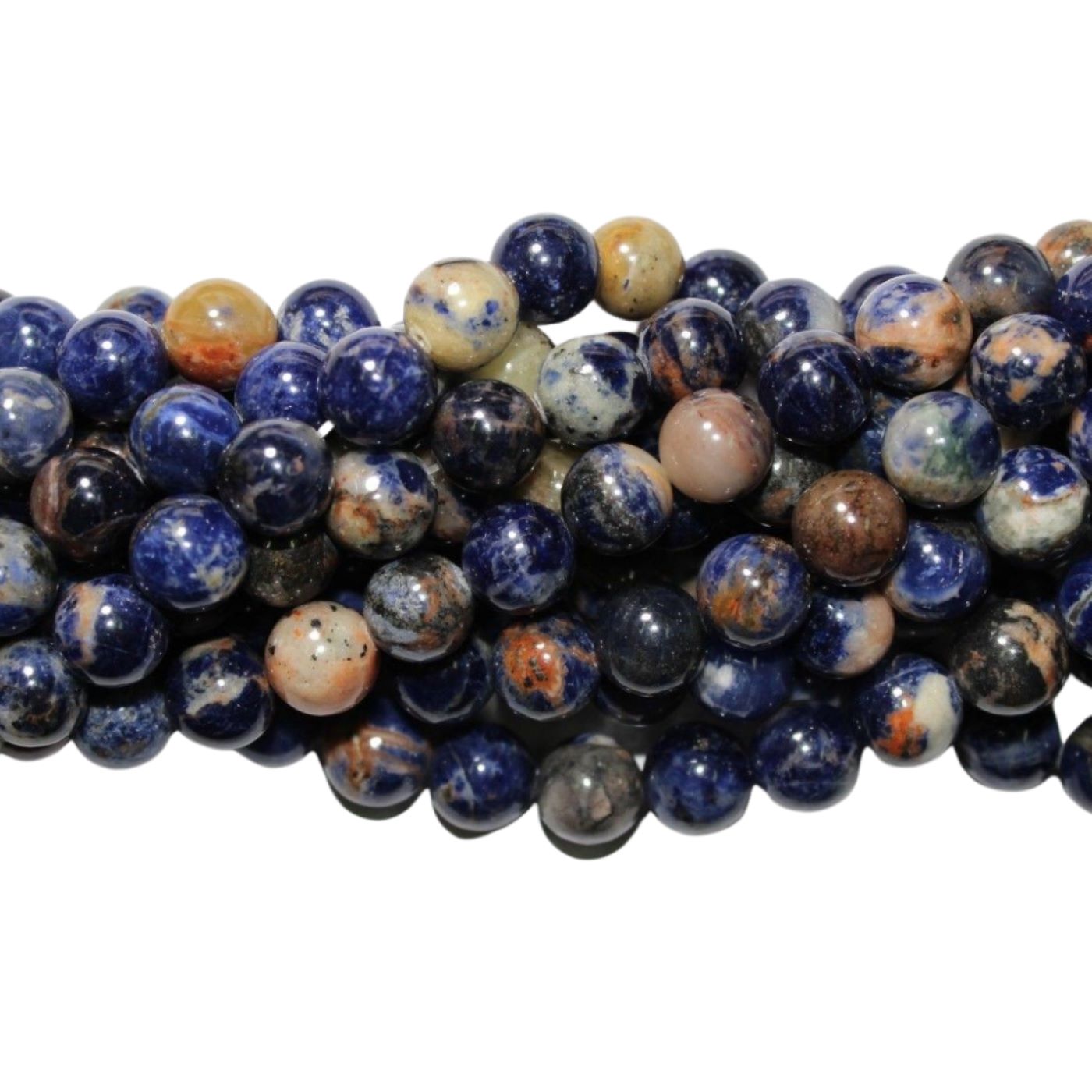 Orange Sodalite – 10mm – Round – 40cm Strand. Approx 10mm bead size. Please contact us to purchase individual pieces.