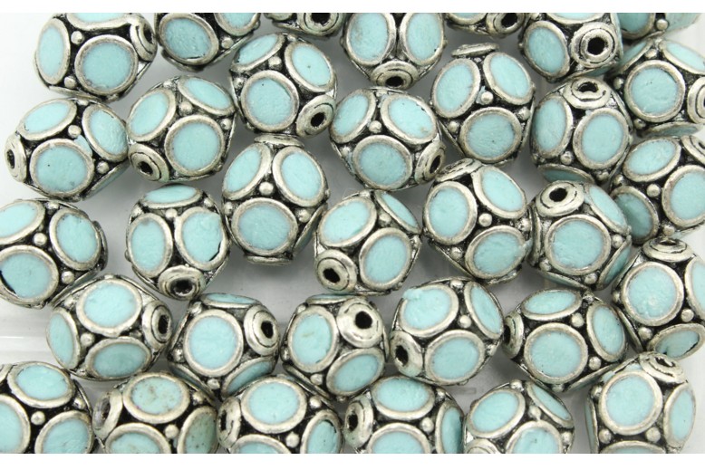 Oval – 13 x 10mm – Antique Silver / Teale. Quality product. Metal Bead. Plated.