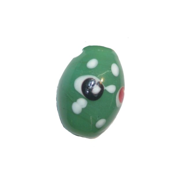 Oval – 19mm – Green. Glass bead. Approx 19mm.