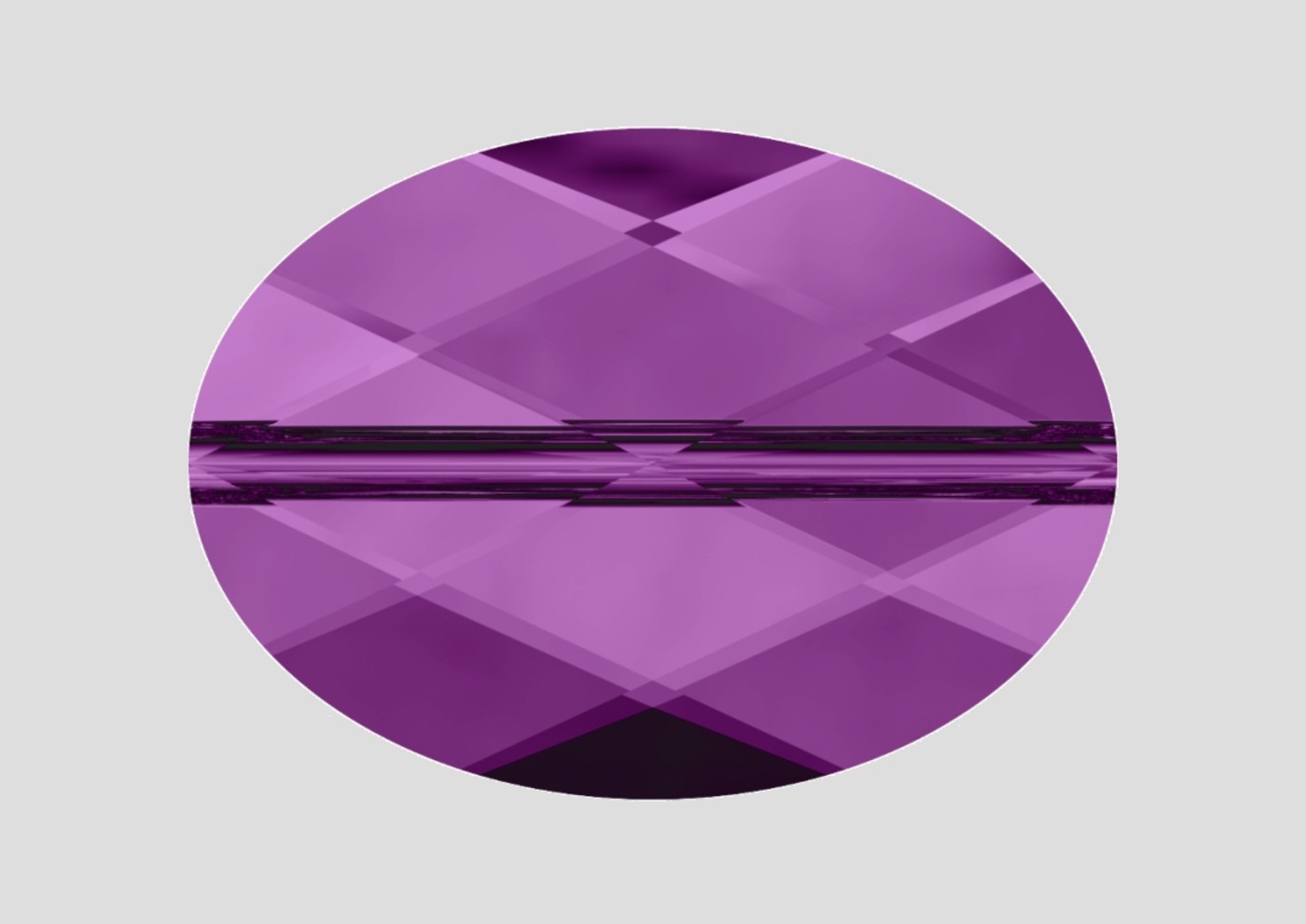 Oval Bead – 14 x 10mm – Amethyst. Swarovski Crystal. Flat Oval. Hole runs through bead.