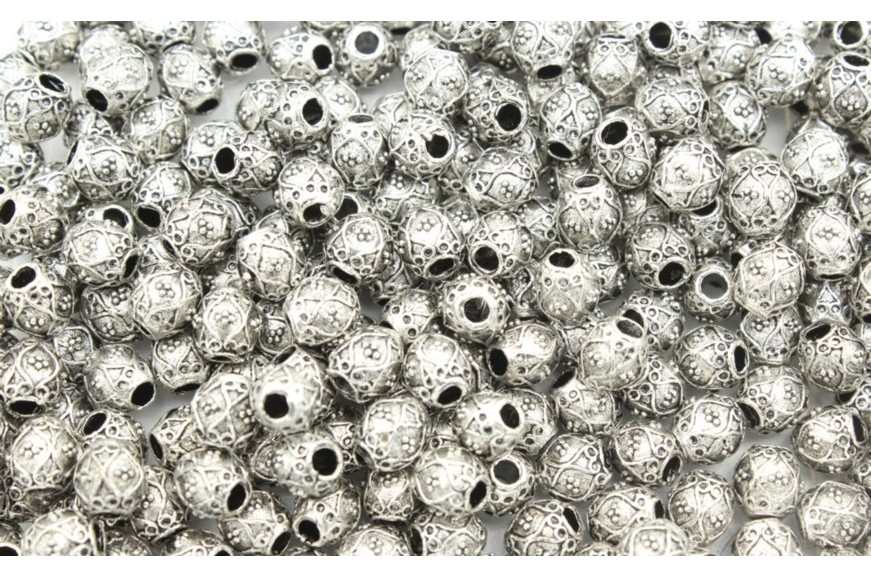 Patterned – 6mm – Dk Antique Silver. Quality product. Metal Bead.