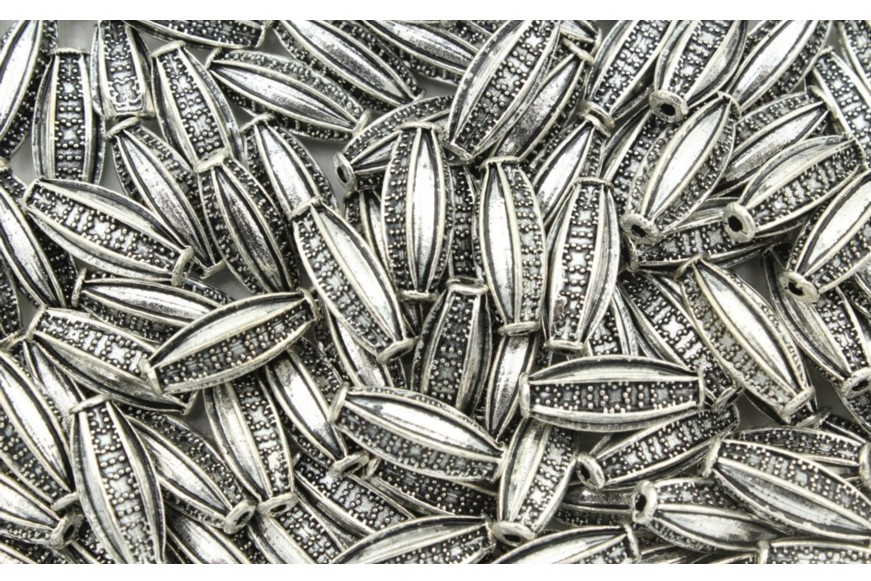 Patterned Oval – 16mm – Antique Silver. Quality product. Metal Bead. Plated.