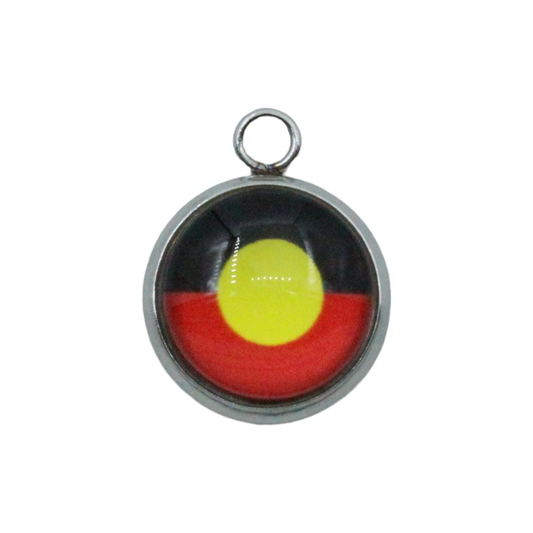 Picture Charm – 12mm – Stainless Steel – Aboriginal Flag.