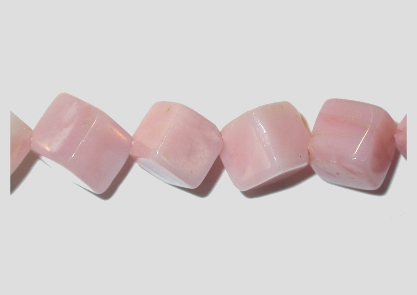 Pink Opal Cube – 38cm Strand. 8mm. Diagonally Drilled. Please contact us to purchase individual pieces.