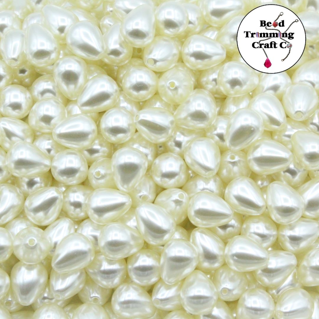 Plastic Pearl – Drop – Half Drilled – 10mm – Light Cream.
