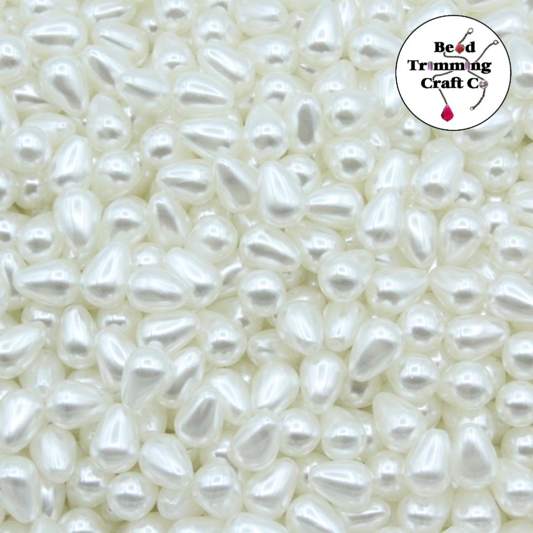 Plastic Pearl – Drop – Half Drilled – 7mm – White