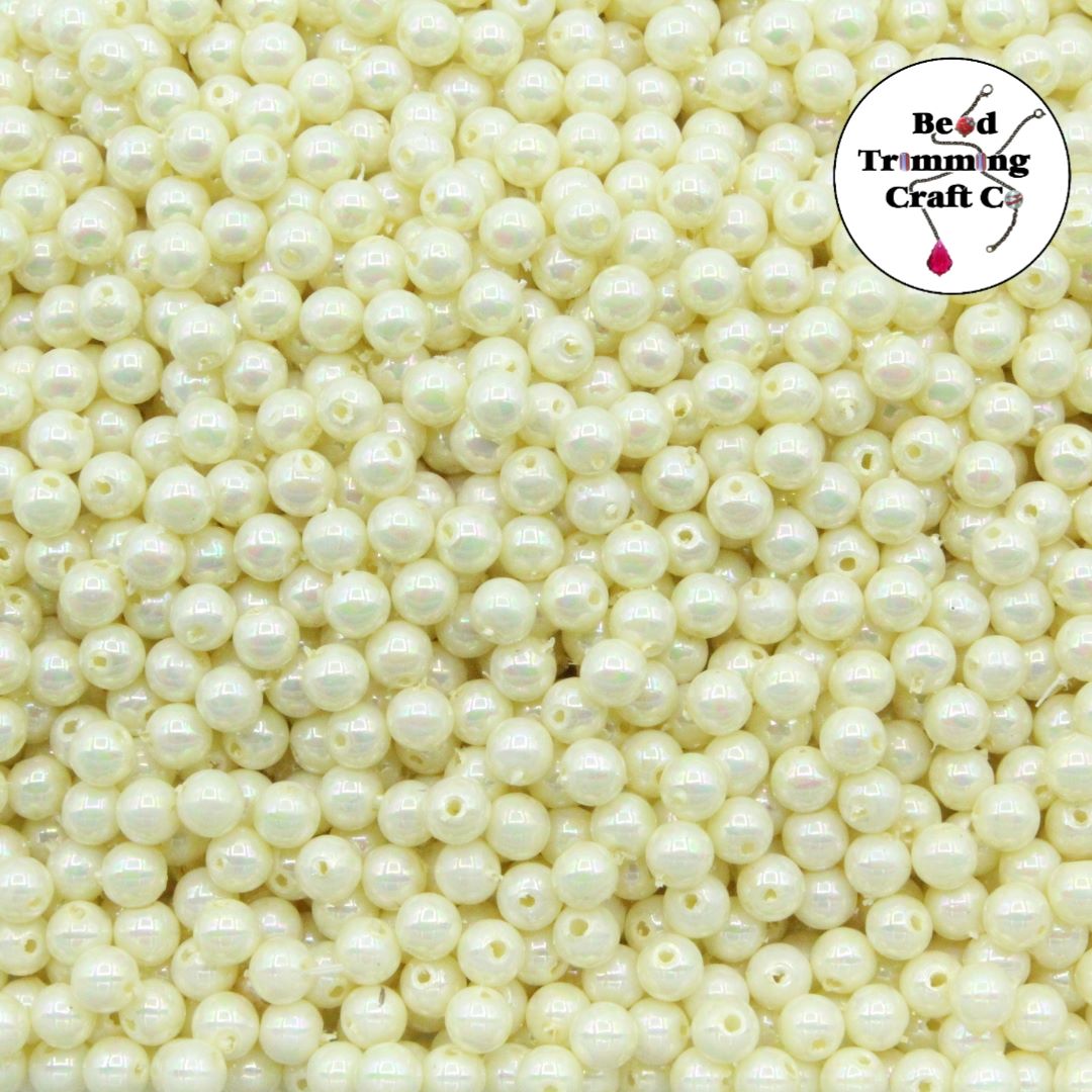 Plastic Pearl – Round – 4mm – Cream Iris – Price per gram
