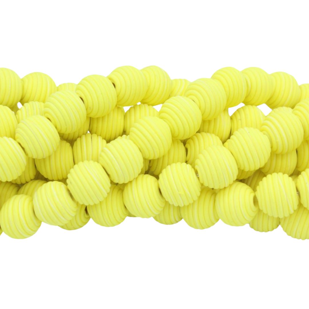 Polymer Clay Beehive Shape – 12mm – 30cm Strand – Yellow. 12mm Bead size.