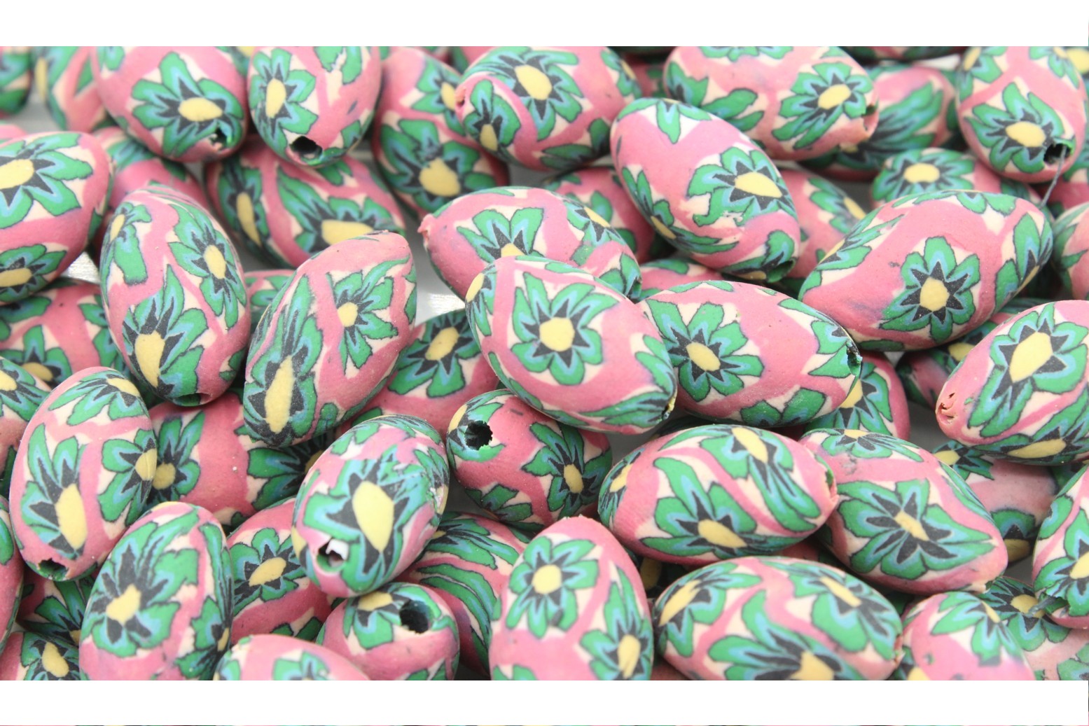 Polymer Clay Oval - 18 x 13mm - Pink / Green quantity