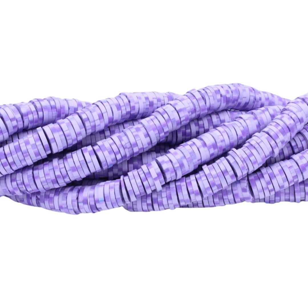 Polymer Clay Washer – 8mm – 39cm Strand – Purple. 8 x 2mm Bead size.