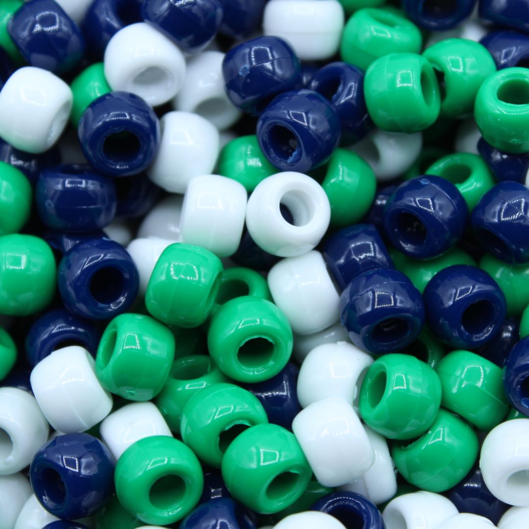 Pony Beads – 9mm – Mix B – Opaque – ‘A’ Quality. Opaque Colour. Plastic beads. 9 x 6mm size. 3.5mm Hole Size.  Excellent quality. Made in the USA.